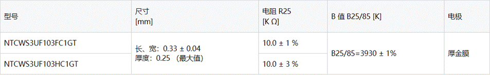 • 電阻和B值容差極小(± 1 %)