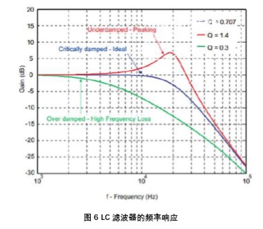 在根據(jù)供電電壓,喇叭負載,輸出功率等選定好合適的電感后,還需要注意LC濾波器 對音頻信號的頻響產(chǎn)生的影響。另外,喇叭阻抗也會影響濾波器的頻響特性。所以,選擇LC參數(shù)時也要同時考慮使用的喇叭阻抗。理想情況下,選擇合適的LC 組成critical damped, 通帶平坦,良好的相位響應(yīng)的濾波器。同時,也需要注意LC濾波器的截止頻率和品質(zhì)系數(shù)Q。