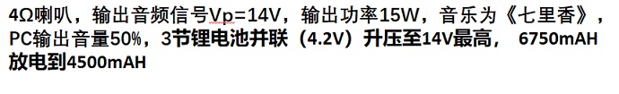 2×14W, 立體聲輸出(4Ω, 12V, THD+N = 1%); 2×10.5W, 立體聲輸出 (6Ω, 12V, THD+N = 1%) |