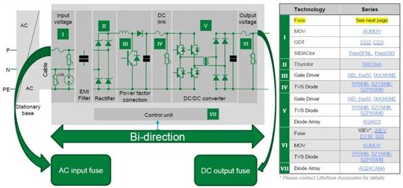 針對于油車、混動車等會涉及較為嚴(yán)苛的5A與5B拋負載實驗,需要用到大功率TVS,對于混動或純電車,其電源端口以及信號端口會有浪涌或靜電情況出現(xiàn),因此會用到TVS與ESD二極管陣列等產(chǎn)品。車載充電機需要與外界電網(wǎng)連接,因此輸入端口需要壓敏與氣體放電管作為雷擊與浪涌保護,Littelfuse MOV+Sidacotr產(chǎn)品是當(dāng)前主推的方案,可以提高MOV壽命的同時改善后級電路殘壓,有效降低因輸入浪涌引起的整機故障率。