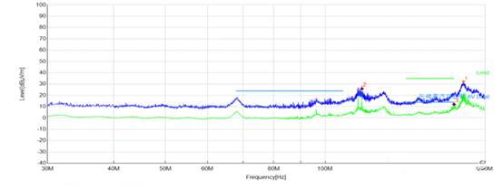從上面的數(shù)據(jù)中可以看到,出現(xiàn)了10MHz間隔的頻率點,并且在154MHz頻點處超標。