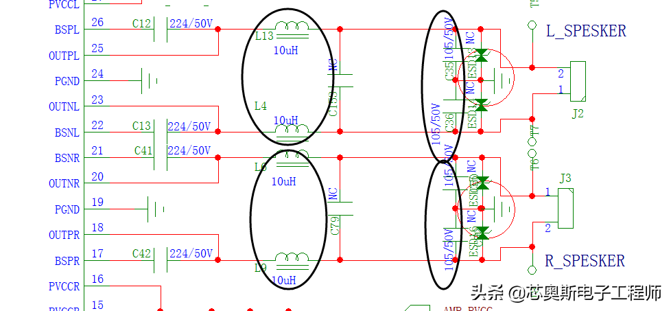 是不是有小伙伴在拆開音頻,或者看見別人設計的板子,喇叭端子那里要么都寫磁珠,要么有些電感,是的,你沒有看錯。如下圖,小編給你說明一下它們的作用