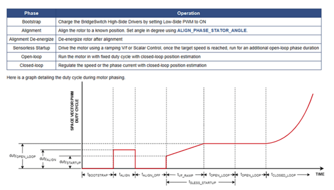 Sensorless Startup階段:此階段通過開環(huán)拖動,使電機(jī)轉(zhuǎn)速逐漸提高至設(shè)定的轉(zhuǎn)速值。