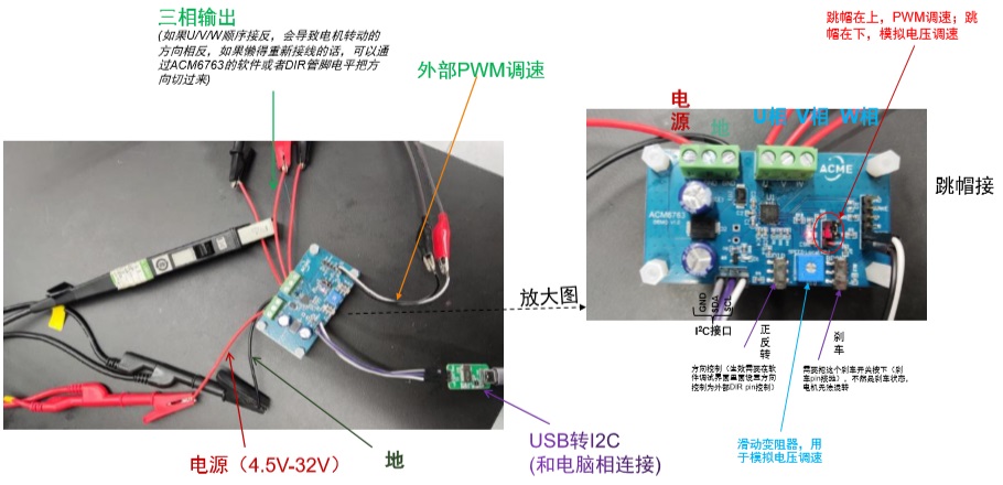 內置MOS大電流三相無刷直流電機驅動芯片ACM6763轉動電機的操作步驟