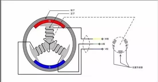 無刷直流電機的定子是線圈繞組電樞,轉(zhuǎn)子是永磁體。如果只給電機通以固定的直流電流,則電機只能產(chǎn)生不變的磁場,電機不能轉(zhuǎn)動起來,只有實時檢測電機轉(zhuǎn)子的位置,再根據(jù)轉(zhuǎn)子的位置給電機的不同相通以對應的電流,使定子產(chǎn)生方向均勻變化的旋轉(zhuǎn)磁場,電機才可以跟著磁場轉(zhuǎn)動起來。