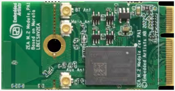 圖 2:AIROC CYW55573 的 EAR00413 評(píng)估板采用 M.2 外形。(圖片來(lái)源:Embedded Artists AB)