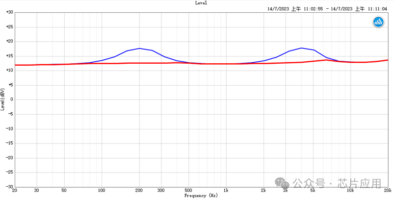 另外一個弊端例如傳統(tǒng)DRC信號突變時,前幾個波形失真的問題。由于傳統(tǒng)DRC是計算RMS,必然有幾個周期的波形是可能失真的。ACM8687除了RMS DRC之外,采用專利技術(shù),加入PEAK檢測。信號經(jīng)過peak加權(quán)后跟RMS值比較,決定先進入peak DRC還是RMS DRC。例如前幾個波形失真問題,可以通過調(diào)整peak DRC的attack來調(diào)整失真。