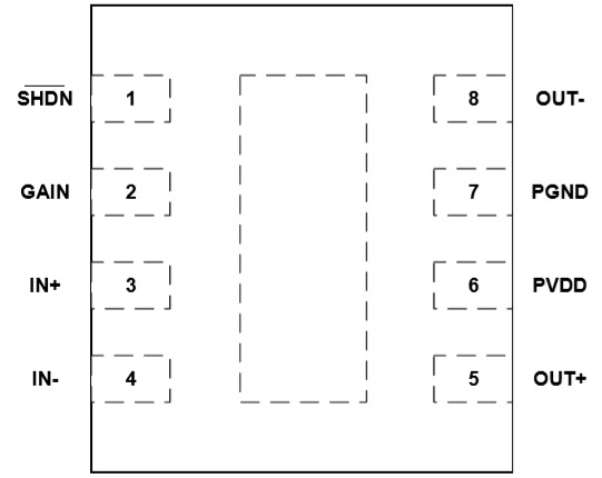 THD+N≤0.03% / 1W、1kHz、PVDD=5V