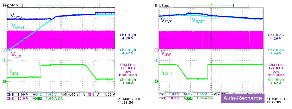 典型充電曲線(工作條件:VIN=16V, VBATT ramp from 0V, ICHG=1.84A, ISYS=1A)