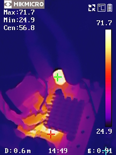 圖7. Vin=50V,Vout=48V(800W)條件下溫度照片 |