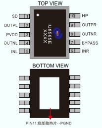 IU8565E是一款雙橋音頻功率放大器芯片,采用5.6V電源供電;在THD+N等于10%情況下,能為一個(gè)4Ω 的負(fù)載提供2x4W的連續(xù)功率。此外,當(dāng)接立體耳機(jī)時(shí),芯片可以單端工作模式驅(qū)動(dòng)立體耳機(jī)。IU8565E雙通道音頻功率放大器是為需要輸出高質(zhì)量音頻功率的系統(tǒng)設(shè)計(jì)的,它采用表面貼裝技術(shù),只需少量的外圍器件,便使系統(tǒng)具備高質(zhì)量的音頻輸出功率。IU8565E采用雙通道設(shè)計(jì)使芯片具有了橋式聯(lián)接揚(yáng)聲器放大和單終端立體耳機(jī)放大兩種工作模式,簡化了音頻系統(tǒng)的外圍電路設(shè)計(jì)。IU8565E內(nèi)置了低功耗待機(jī)電路和過熱保護(hù)電路,同時(shí)內(nèi)置了雜音消除電路,可以消除芯片啟動(dòng)和關(guān)斷過程中的咔嗒聲或噼噗聲。為了能夠使得系統(tǒng)能夠更易于通過EMI檢測 ,IU8565E采用專有的AERC((Adaptive Edge Rate Control)技術(shù)和擴(kuò)頻技術(shù),在音頻全帶寬范圍內(nèi)極大地降低了EMI的干擾.