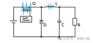 輸入電容器、開(kāi)關(guān)和二極管形成了一個(gè)高電流環(huán)路,這是一個(gè)H場(chǎng)環(huán)形天線。最小的寄生電感和電容會(huì)產(chǎn)生高頻振鈴,這是差模噪聲的主要原因。使用低等效串聯(lián)電阻(ESR)電容器和緊湊的布局可以最小化該環(huán)路中傳導(dǎo)引起的輻射場(chǎng)。