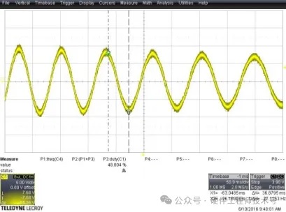 電感測試通常使用示波器進行。接任意兩相端口到示波器電壓探頭,第三相懸空。用手撥動電機轉動一圈,觀察并記錄示波器上顯示正弦波峰值個數,即為極對數。