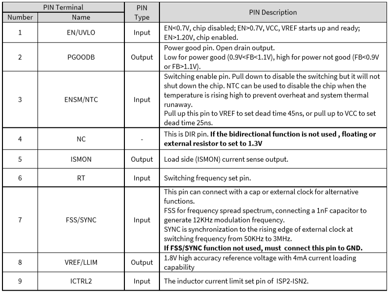 引腳配置和功能