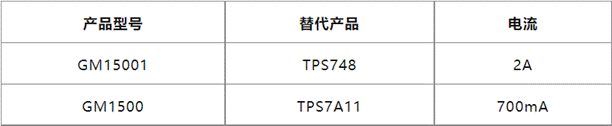 GM15001可替代TI的TPS748等多款型號(hào)。