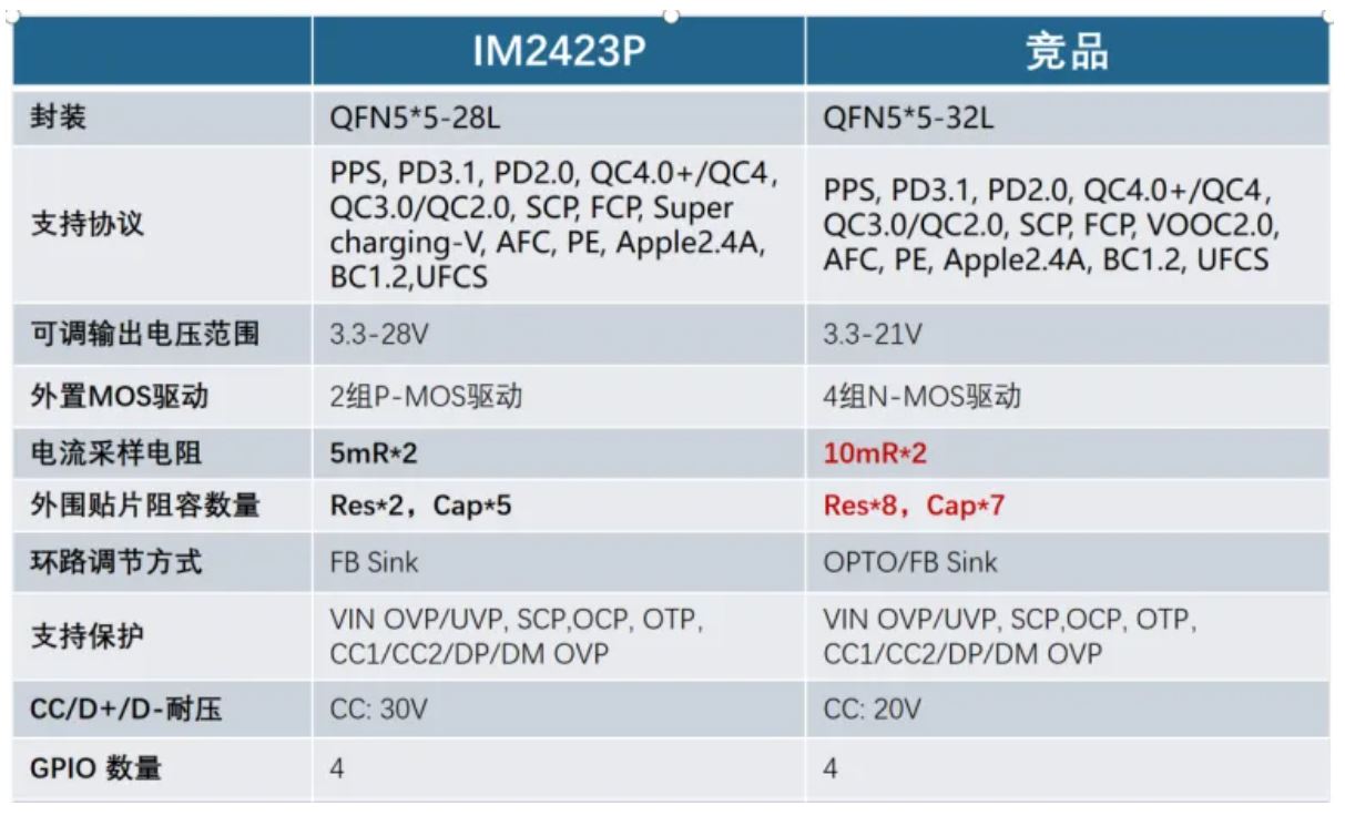 IM2423P與競(jìng)品核心參數(shù)及BOM對(duì)比
