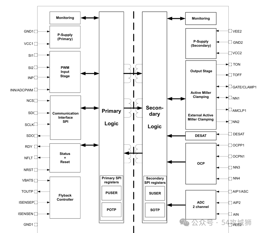 2.集成反激電源芯片。類似四代特斯拉采用的STGAP4驅動IC,根據(jù)合適的電源拓補+小磁芯的平面變壓器實現(xiàn)體積和成本的收益。