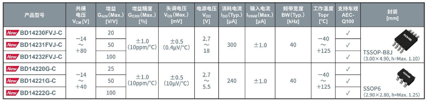 ROHM還提供適用于工業(yè)設(shè)備應(yīng)用的電流檢測(cè)放大器“BD1421x-LA”。
