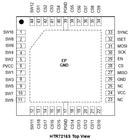 HTR7216(S)的工作電壓在2.7V到5.5V之間,并且關(guān)斷電流和工作電流都非常小。HTR7216支持QFN5×5-44L封裝,可在2.7V到 5.5V和-40°C to +125°C下工作。