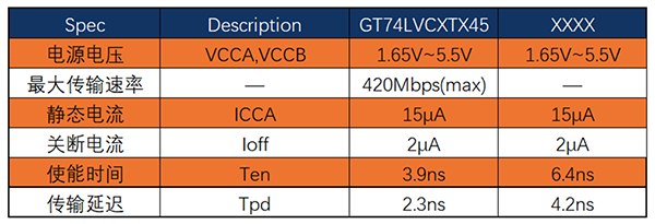 GT74LVCXTX45系列包括一路,二路,四路,八路和十六路收發(fā)器,是具有可配置電平轉(zhuǎn)換的雙電源總線收發(fā)器。最大傳輸速率可達到420Mbps,滿足高速數(shù)據(jù)傳輸要求。該收發(fā)器使用兩個獨立的電源軌,VCCA和VCCB的工作電壓范圍為1.65V至5.5V,支持寬電壓輸入。A端口參考VCCA,B端口參考VCCB,可以在1.8V、2.5V、3.3V和5.5V電壓節(jié)點之間實現(xiàn)通用低壓雙向轉(zhuǎn)換。具備VCC隔離特性,當(dāng)任一VCC輸入端處于接地狀態(tài),則所有輸入端均處于高阻抗?fàn)顟B(tài)。A端口和B端口的輸入電路始終處于激活狀態(tài),并具有邏輯高電平或邏輯低電平,以防止出現(xiàn)過多的ICC和ICCZ。GT74LVCXTX45的控制引腳由VCCA供電。該芯片的工作范圍為-40℃~125℃。