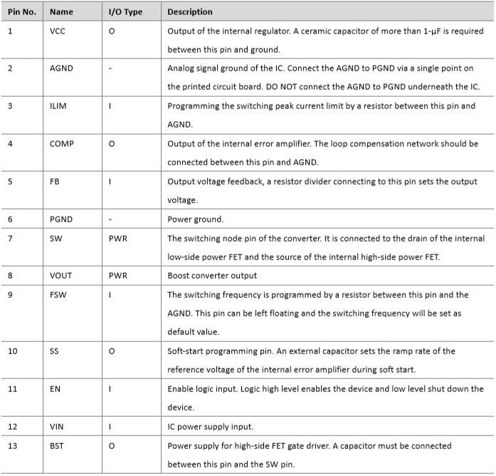 ACM5620采用自適應(yīng)恒定關(guān)斷時間峰值電流控制模式,以調(diào)節(jié)輸出電壓并確?焖偎矐B(tài)響應(yīng)。ACM5620在脈沖寬度下工作中、重載時的調(diào)制(PWM)模式,隨著負載電流的減小切換到脈沖頻率調(diào)制(PFM)模式以保持高效運行。ACM5620提供準(zhǔn)確在寬負載和VIN范圍內(nèi)進行調(diào)節(jié),并保持低輸出紋波。ACM5620提供22.8V的過電壓保護,電流跟蹤保護和過熱保護。