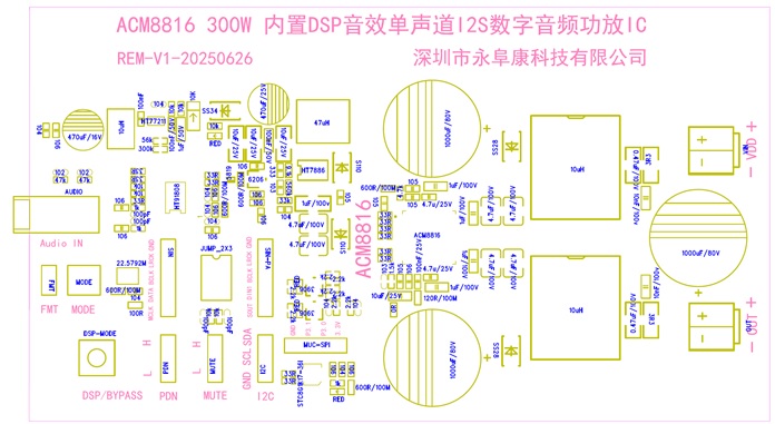 深圳市永阜康科技有限公司現(xiàn)在大力推廣國(guó)內(nèi)首款氮化鎵D類音頻功放芯片-ACM8816, 集成了7mΩ Rdson GaN氮化鎵,48V供電時(shí),驅(qū)動(dòng)到4Ω可以在10%THD+N內(nèi)輸出1×340W的功率,QFN-48貼片封裝,不需要外接散熱器輔助散熱。