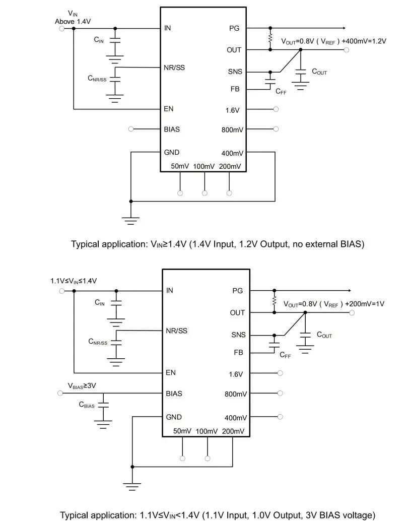 ET5C001YB器件的多功能性使其非常適合許多嚴(yán)苛的應(yīng)用。由于其優(yōu)秀的性能其輸出可以作為ET51200的VREFIN以及VLDOIN端口的供電,進(jìn)行聯(lián)合使用;使得整個應(yīng)用擁有出色的系統(tǒng)性能。