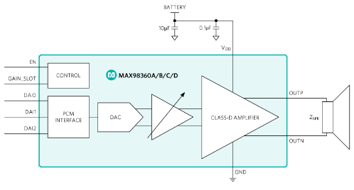 隨著音頻接口迅速成為電池供電的可穿戴設(shè)備、物聯(lián)網(wǎng)設(shè)備和其他類型的小型便攜式電子設(shè)備的普遍功能,設(shè)計(jì)人員正在尋找更簡(jiǎn)單、更具成本效益的方法來為其設(shè)備添加高質(zhì)量音頻。在此設(shè)計(jì)解決方案中,我們回顧了將某些D類放大器集成到空間受限應(yīng)用中的困難。我們可以得出結(jié)論,新一代靈活的低功耗數(shù)字輸入D類音頻放大器為將音頻集成到任何類型的電子設(shè)備中的任務(wù)帶來了“即插即用”的簡(jiǎn)單性,使其成為便攜式設(shè)備,可穿戴設(shè)備和物聯(lián)網(wǎng)設(shè)備的理想選擇。MAX98360除采用9引腳WLP封裝外,還提供10引腳FC2QFN封裝。 |