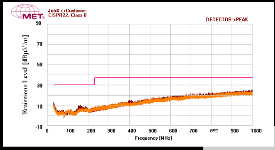 圖5.MAX98360 EMI性能,采用12in.帶狀線負(fù)載。