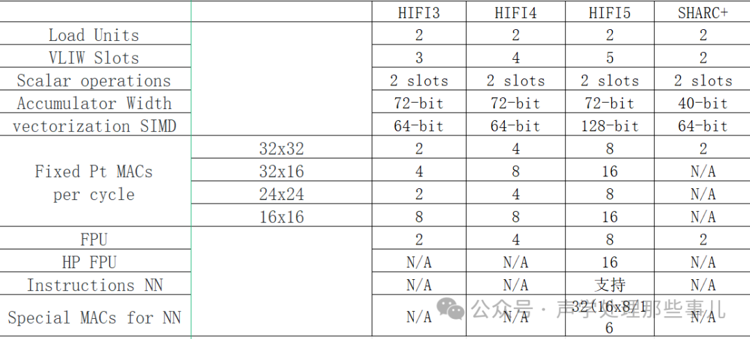 DSP 除了硬件之外,最主要的是DSP IP,廣泛使用的是 Cadence HIFI 以及 ADI SHARC 系列, 另外還有 TI DSP 以及高通 Hexagon DSP