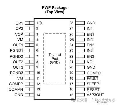18V、3A三相無刷無感驅(qū)動、180˚正弦,集成驅(qū)動算法+預驅(qū)+MOS |