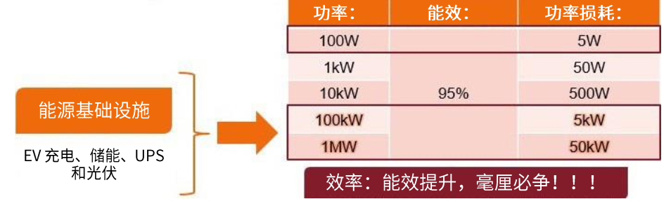 對于傳統(tǒng)的小功率產品 (~100 W), 95% 的效率是可以接受的。對于使用數(shù)百千瓦或兆瓦的高功率應用而言 , 管理功耗是一項更為復雜的設計工作, 因為效率的每千分之一都很重要。