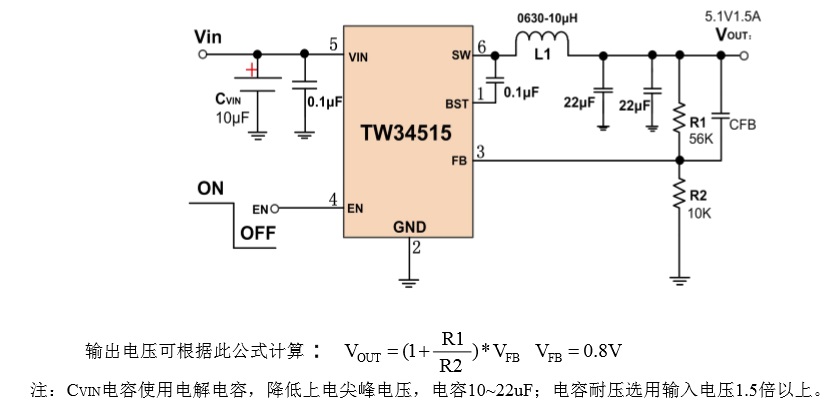 TW34515所需外圍器件較少,采用SOT23-6封裝。