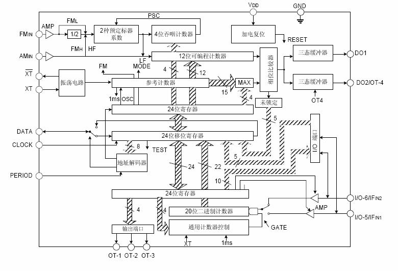 * 內(nèi)置20位通用計數(shù)器,用來測量中頻頻率(IFIN1和IFIN2)。
