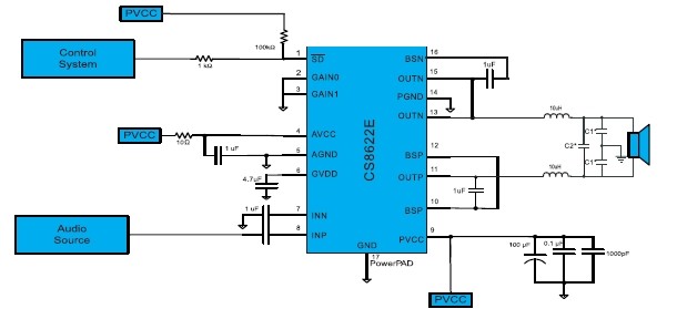 內(nèi)置升壓的30W立體聲D類(lèi)音頻功放 |