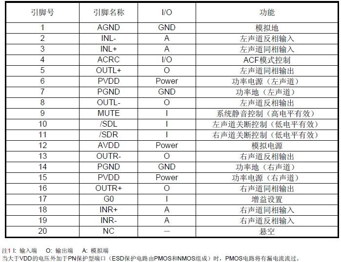 具有防破音功能的免電感濾波2×20W D類立體聲音頻功放 |