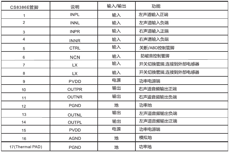 恒定4.8W/2.5V-5.5V(內(nèi)置自適應(yīng)Charge Pump模塊)/4Ω |