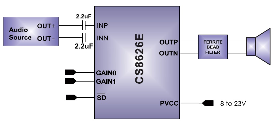 CS8626E是一款55W單聲道高效D類(lèi)音頻功率放大電路。先進(jìn)的EMI抑制技術(shù)使得在輸出端口采用廉價(jià)的鐵氧體磁珠濾波器就可以滿(mǎn)足EMC要求。CS8626E單通道音頻功率放大 器是為需要輸出高質(zhì)量音頻功率的系統(tǒng)設(shè)計(jì)的,它采用表面貼裝技術(shù),只需少量的外圍器件,便使系統(tǒng)具備高質(zhì)量的音頻輸出功率。管腳兼容CS8622/CS8623,為客戶(hù)產(chǎn)品音質(zhì)提升提供無(wú)縫切換的便利。