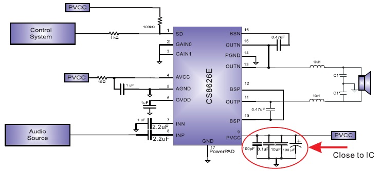 當(dāng)前位置:首頁(yè)->產(chǎn)品展示->功放IC->CS8626(免濾波、50W單聲道D類(lèi)音頻放大器) |