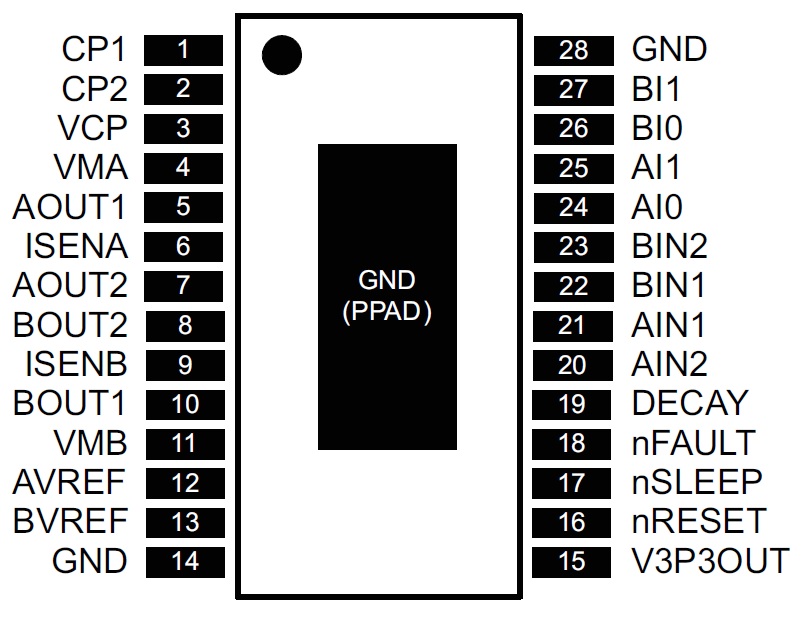 當(dāng)前位置:首頁->產(chǎn)品展示->馬達(dá)驅(qū)動(dòng)IC/步進(jìn)電機(jī)控制芯片->DRV8841/AT8841(3A雙路刷式直流或單路雙極步進(jìn)電機(jī)驅(qū)動(dòng)器)