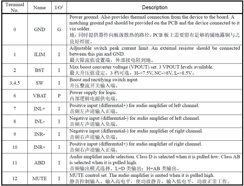 內(nèi)置BOOST升壓的2×5.5W立體聲音頻功率放大器 |