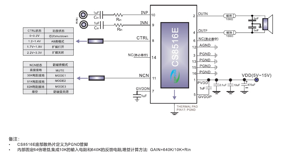 CS8516(應(yīng)用于收音機的5V-15V寬電壓AB/D類切換功能30W貼片單聲道音頻功放IC) |