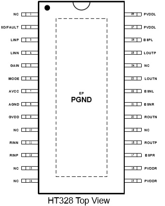 HT328(30W立體聲/60W單聲道D類功放IC) |