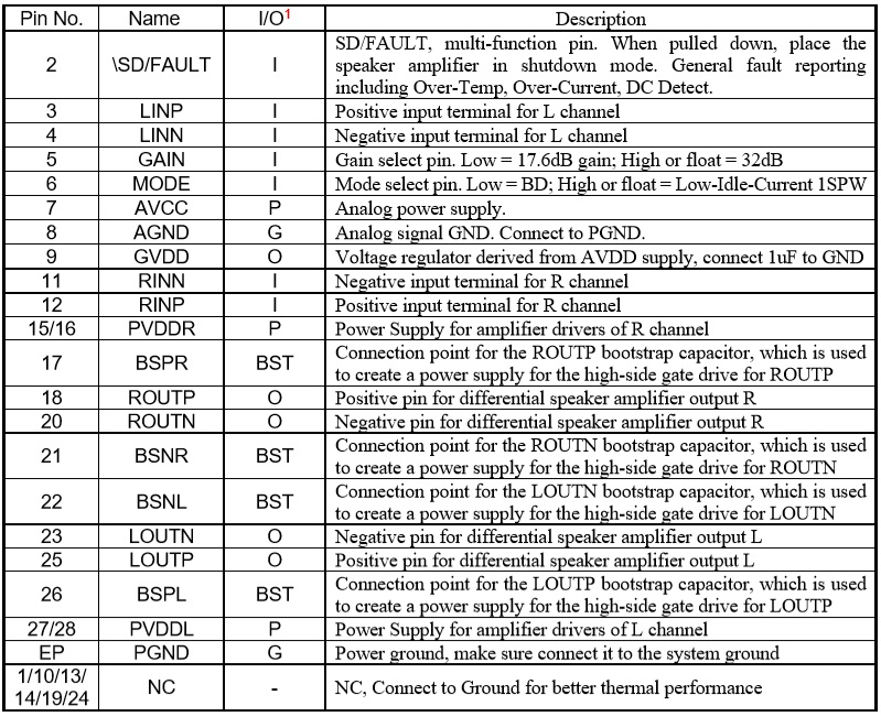2×30W (VDD=24V, RL=8Ω, THD+N=1%)