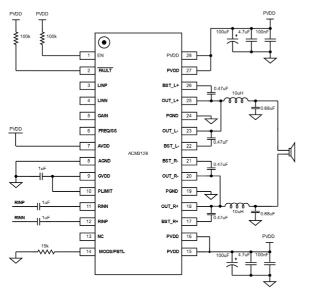 當(dāng)前位置:首頁->產(chǎn)品展示->功放IC->ACM3128(動態(tài)調(diào)整升壓CLASS H功能、40W立體聲/80W單聲道D類音頻功放IC) |