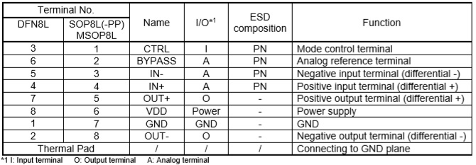・高信噪比SNR:95dB (VDD = 6.5V, Av = 24dB, THD+N = 1%)