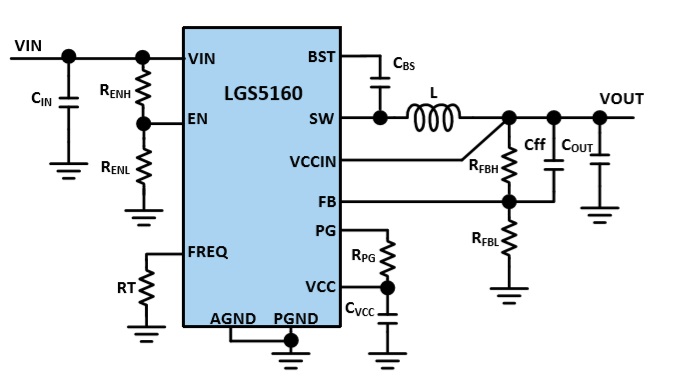 LGS5160具有低阻值130mΩ高側和95mΩ低側功率管, 可提供至少2.5A的輸出電流能力,具有出色的負載和線路瞬態(tài)響應。