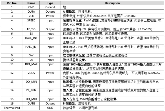 ACM6252是一款內(nèi)置H橋功率MOS管的單相無(wú)刷電機(jī)驅(qū)動(dòng)芯片. ACM6252支持可以調(diào)整的速度曲線,正弦波驅(qū)動(dòng)保證直流風(fēng)扇靜音高效.