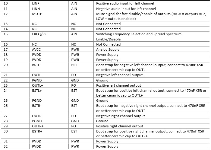 - THD+N ≤ 0.02% 測試條件 1W, 1kHz,4Ω, PVDD=32V